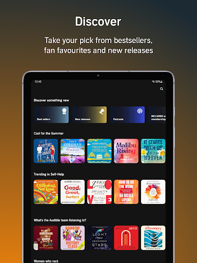 - Audible: Audio Stories & Books will ask you for certain permissions and access, you can accept to continue. Then, enjoy this app!