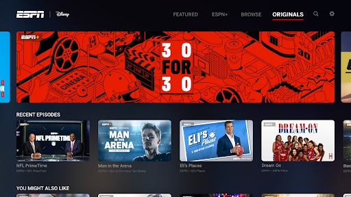 - Enjoy the complete 30 for 30 library and exclusive ESPN+ Originals from the biggest names in sports
