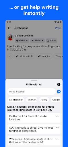 - Set status updates & use Facebook emoji to help relay what’s going on in your world