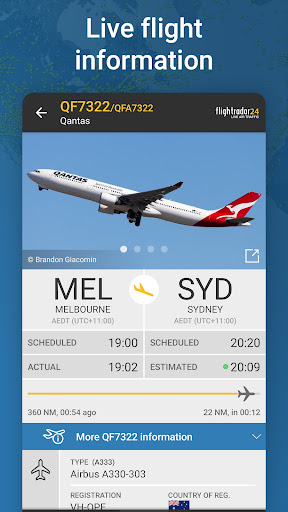 - Identify flights overhead & see flight information—including a photo of the actual airplane