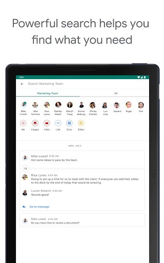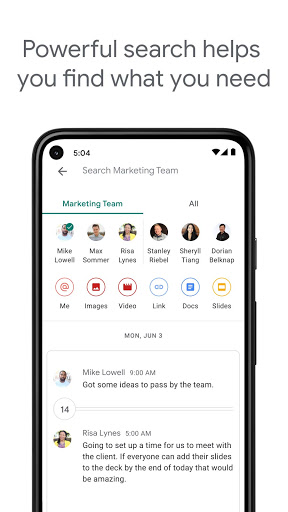 - Google search functionality, with options to filter for conversations and content that you’ve shared