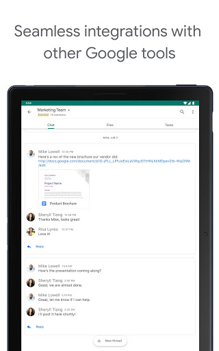 Yes, Google Chat is available on Google Play. Therefore, you can find additional information about Google Chat on Google Play as a complement to this page of AppInPocket. To download Google Chat, you can either download it on Google Play, or simply click the "Download" button on this page.>