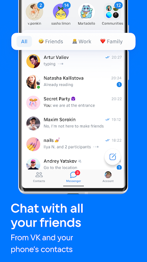 VK Messenger: Chats and calls is a social app that is frequently changing and updating. The latest version of VK Messenger: Chats and calls, version 1.143, was launched on 04 28, 2023. This version requires Android 6.0 or above to run and the file size is 124.8 MB. The oldest version that we can offer was published on 04 28, 2023.