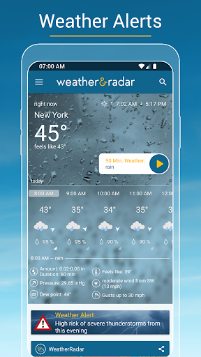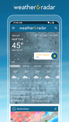 Weather & Radar - Storm radar is a weather app that is frequently changing and updating. The latest version of Weather & Radar - Storm radar, version 2022.23, was launched on 04 28, 2023. This version requires Android 6.0 or above to run and the file size is 44.2 MB. The oldest version that we can offer was published on 04 28, 2023.