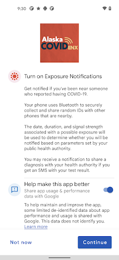 - Alaska COVID ENX will ask you for certain permissions and access, you can accept to continue. Then, enjoy this app!